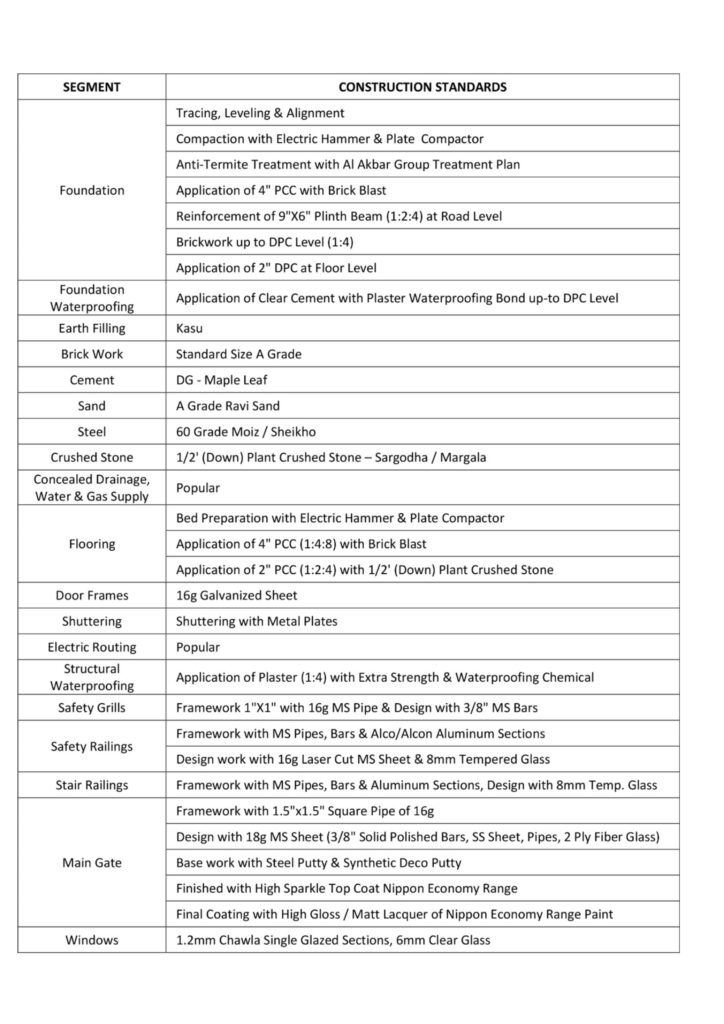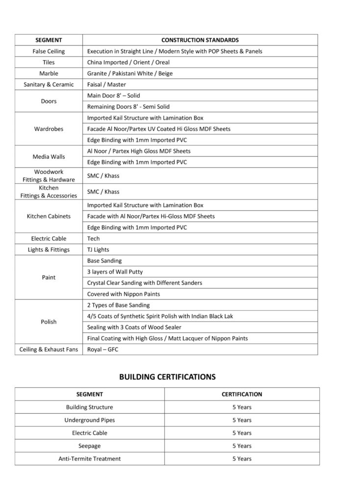 CONSTRUCTION STANDARD & CERTIFICATES